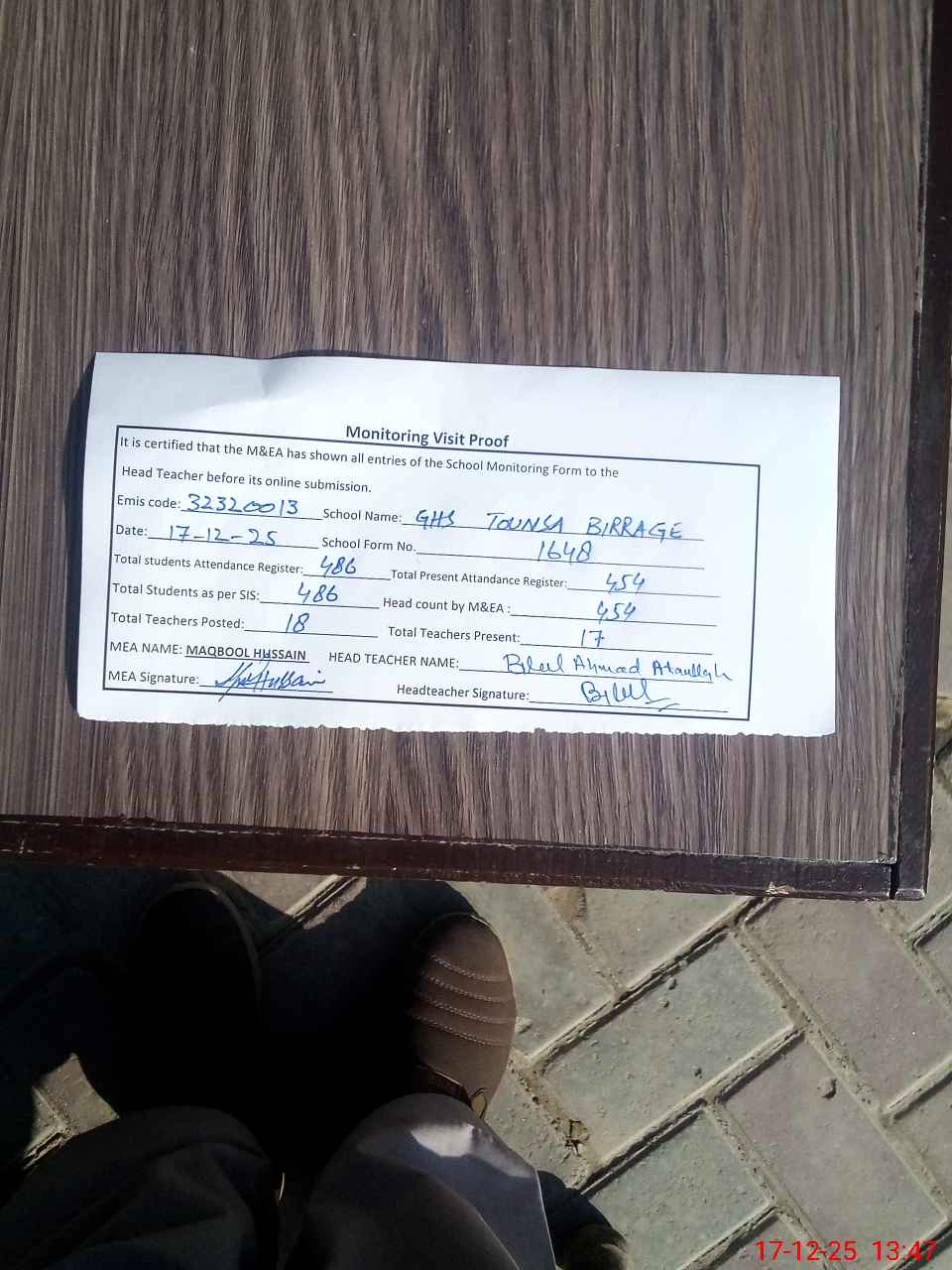 | EMIS Code: 32320013 | Name of School: GHS TAUNSA BERAJ | |||