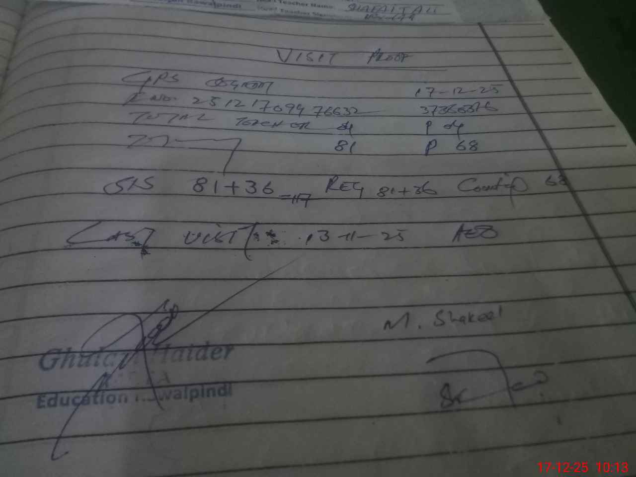 | Name: MO**** SH**** Designation: (School Headmaster's/Headmistress's) PST Phone/Cell Number: 03**** |