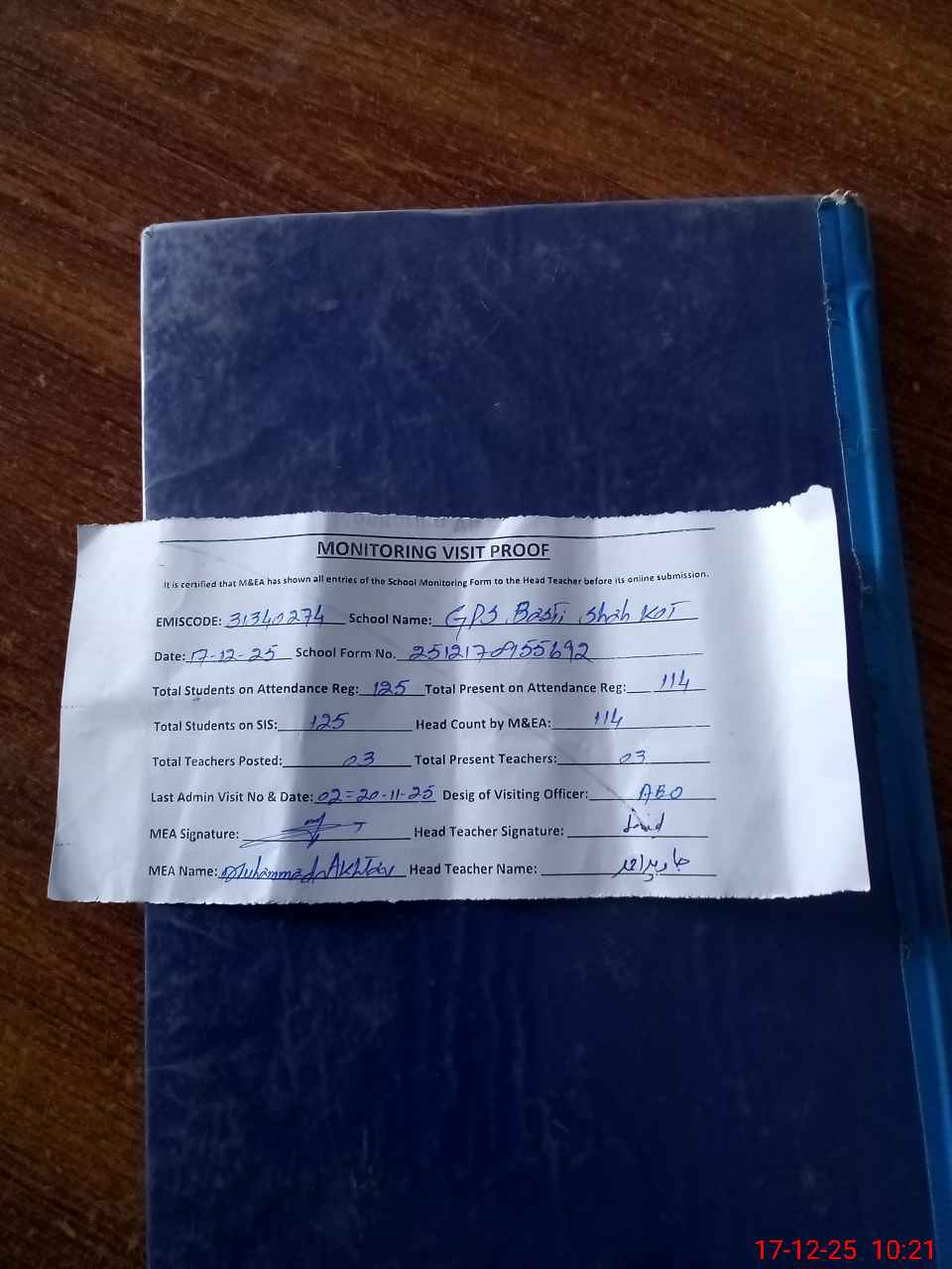 | EMIS Code: 31340274 | Name of School: GPS BASTI SHAH KOT | |||