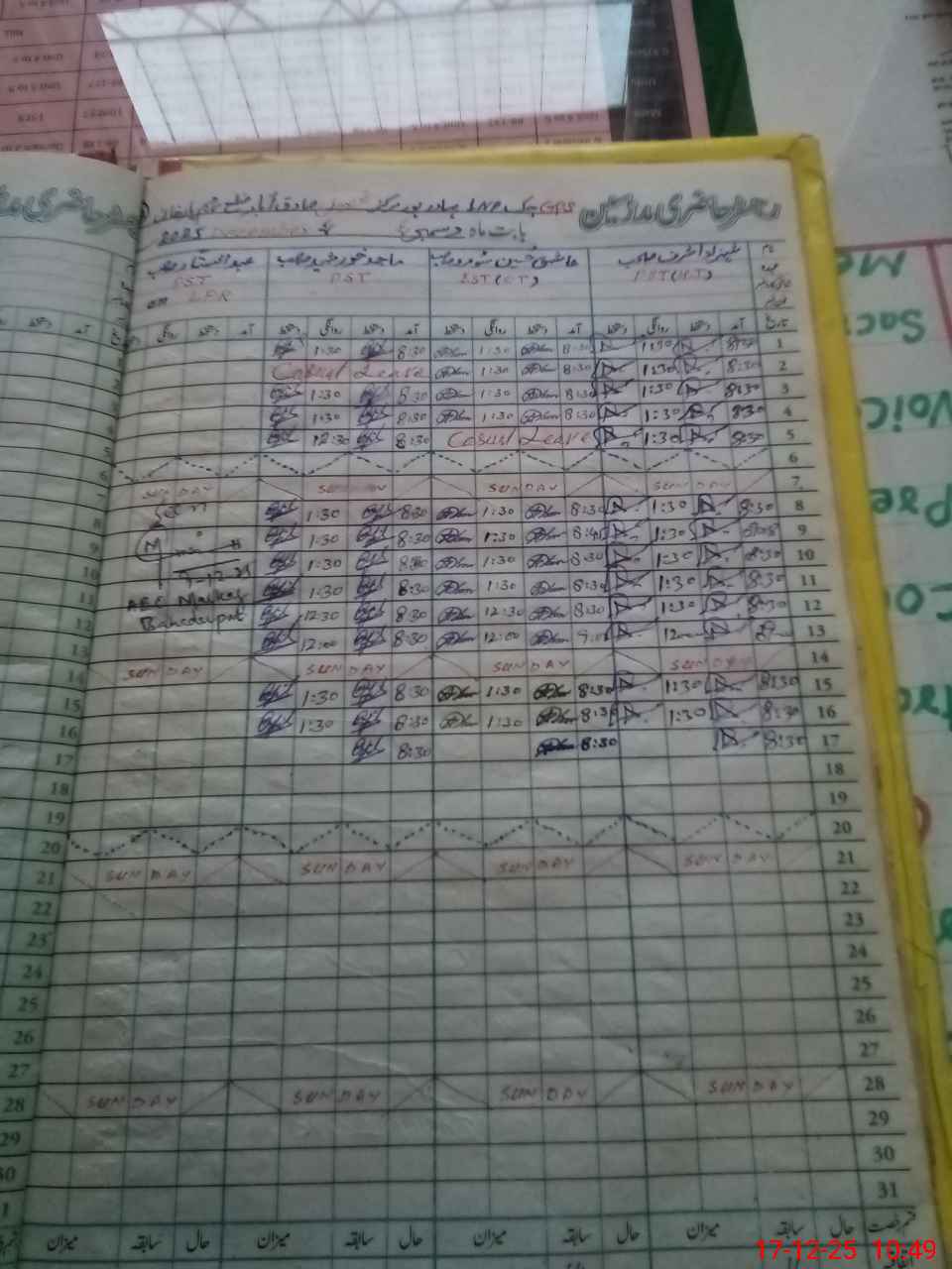 | CNIC | Full Name | Designation | R/C | Absence During Last Calender Month |