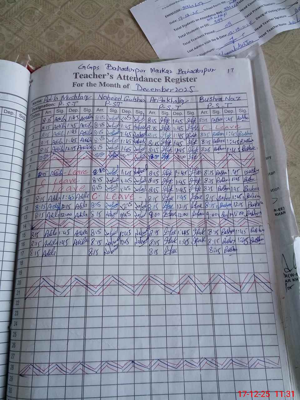 | 31**** | Me**** Sa**** | PST Science/Maths | Regular | 3 | 0 | 0 | 0 | 0 | 0 | 0 | 0 | 3 | Casual |