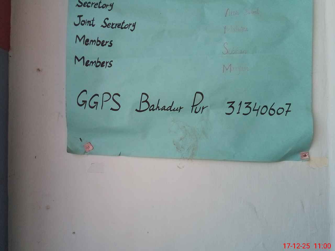 | EMIS Code: 31340607 | Name of School: GGPS CHOWK BAHADAR PUR | |||