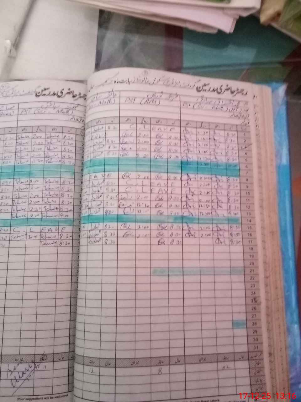 | Leave | Duty | Absent | Maternity | Medical | Ex- Pak |
