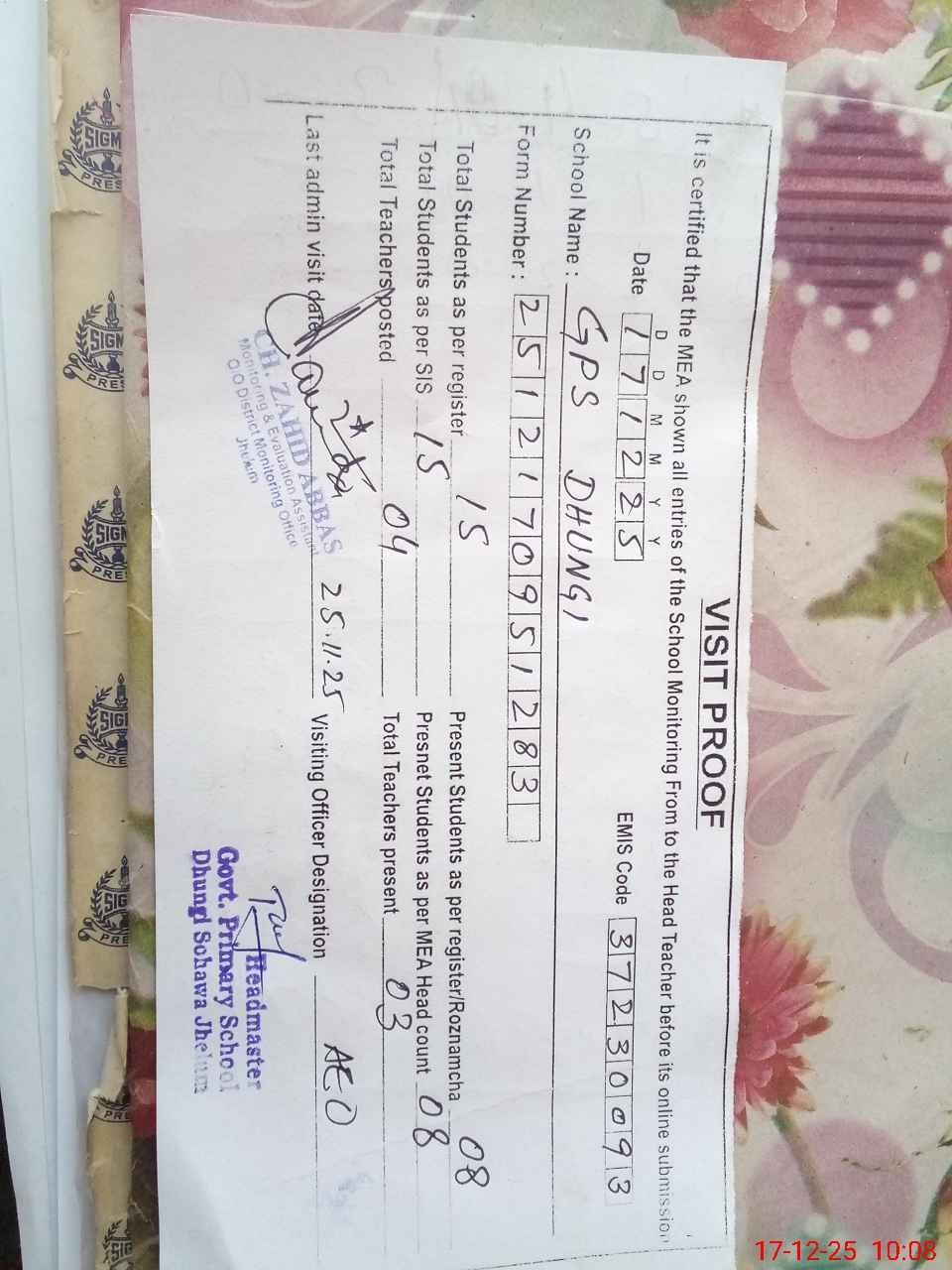 | EMIS Code: 37230093 | Name of School: GPS DHUNGI | |||