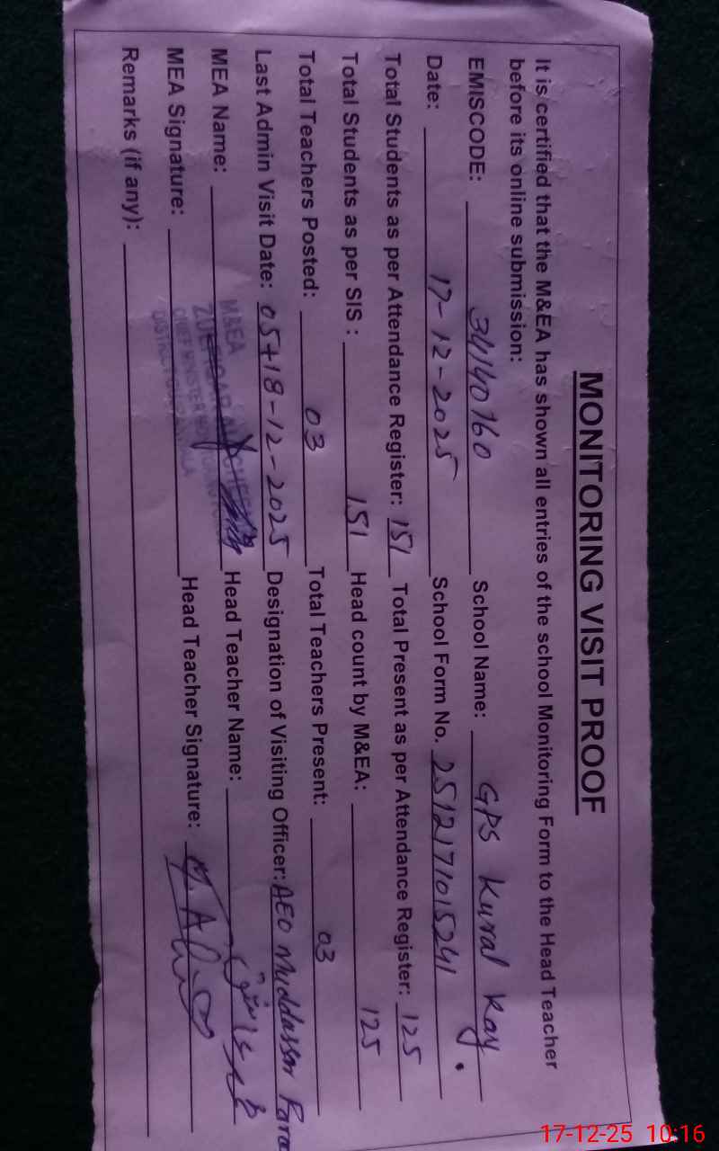 | EMIS Code: 34140160 | Name of School: GPS KURAL KAY | |||