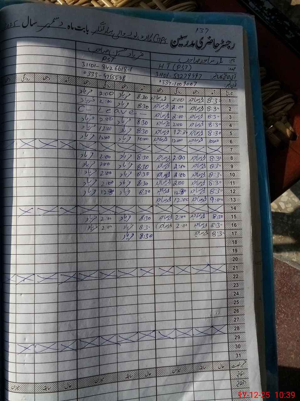| Name: MSa**** Ra**** Designation: (School Headmaster's/Headmistress's) PST Phone/Cell Number: 03**** |