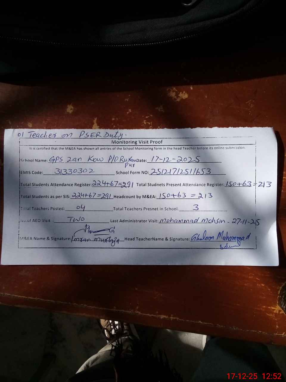 | EMIS Code: 31330302 | Name of School: GPS ZAN KOW PO RUKAN PUR | |||