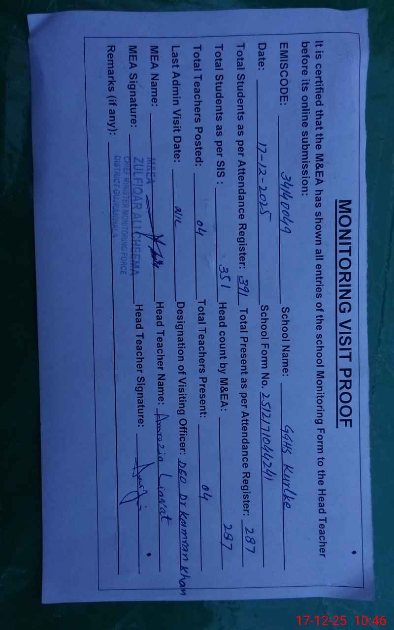 | EMIS Code: 34140049 | Name of School: GGHS KURLKE | |||