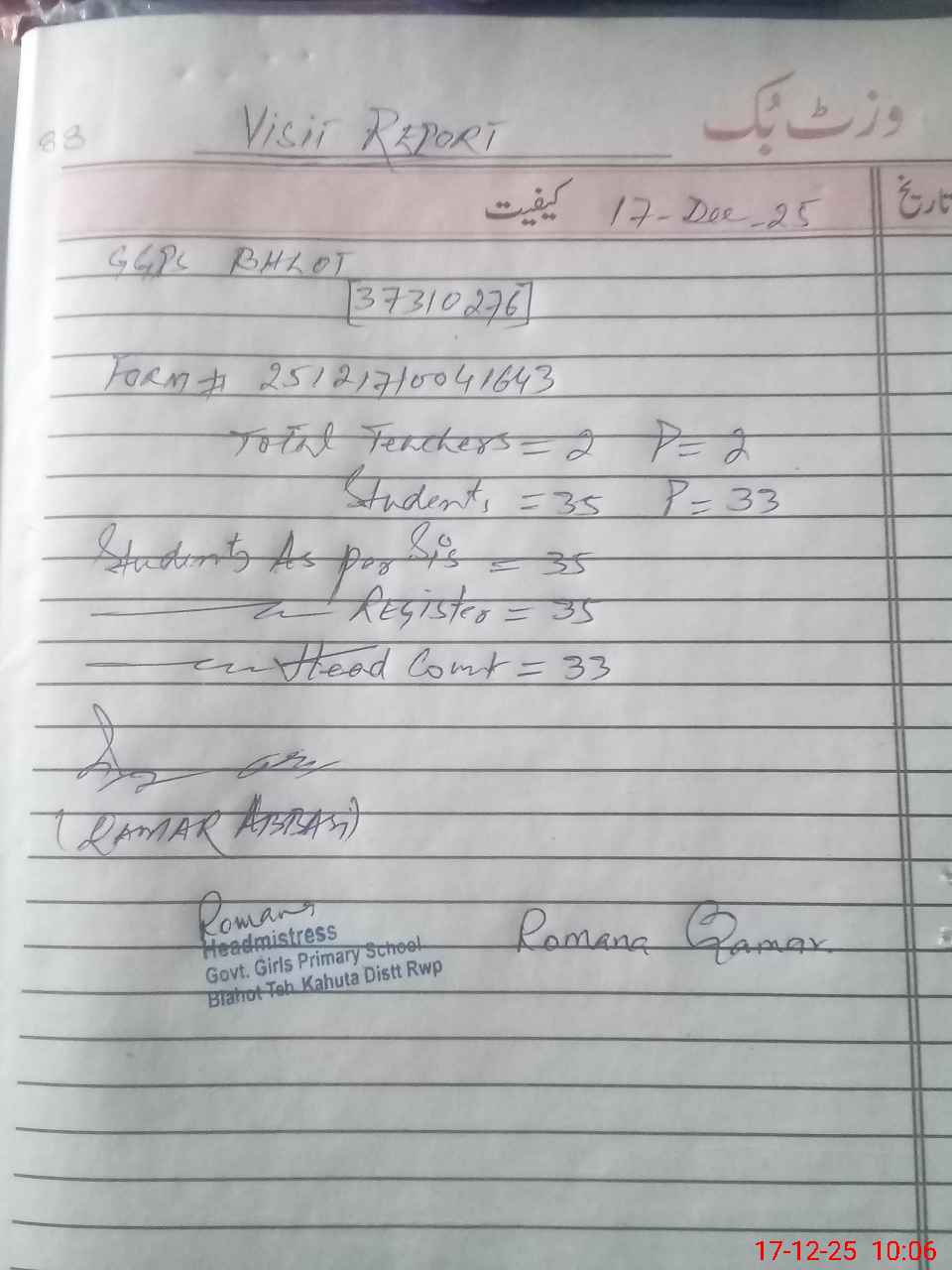 | EMIS Code: 37310276 | Name of School: GGPS BHALOT | |||