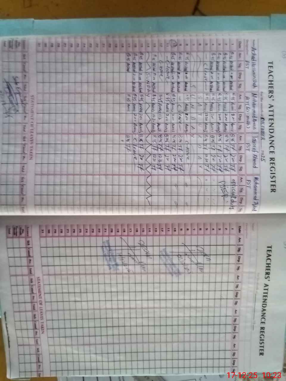 | CNIC | Full Name | Designation | R/C | Absence During Last Calender Month |
