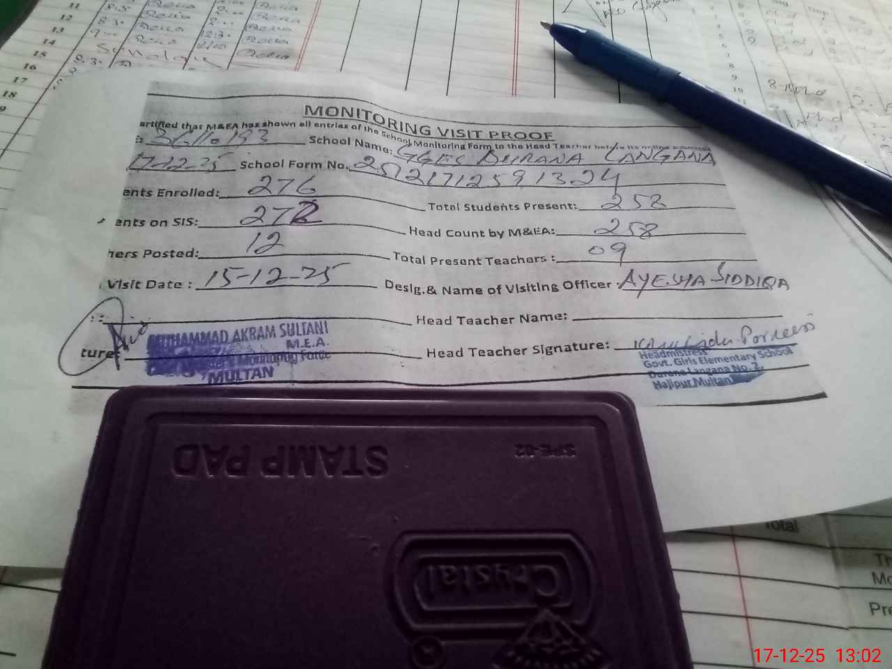 | District: MULTAN | Tehsil: MULTAN CITY | Markaz: GULGASHT COLONY- FEMALE | Level: Middle | |
