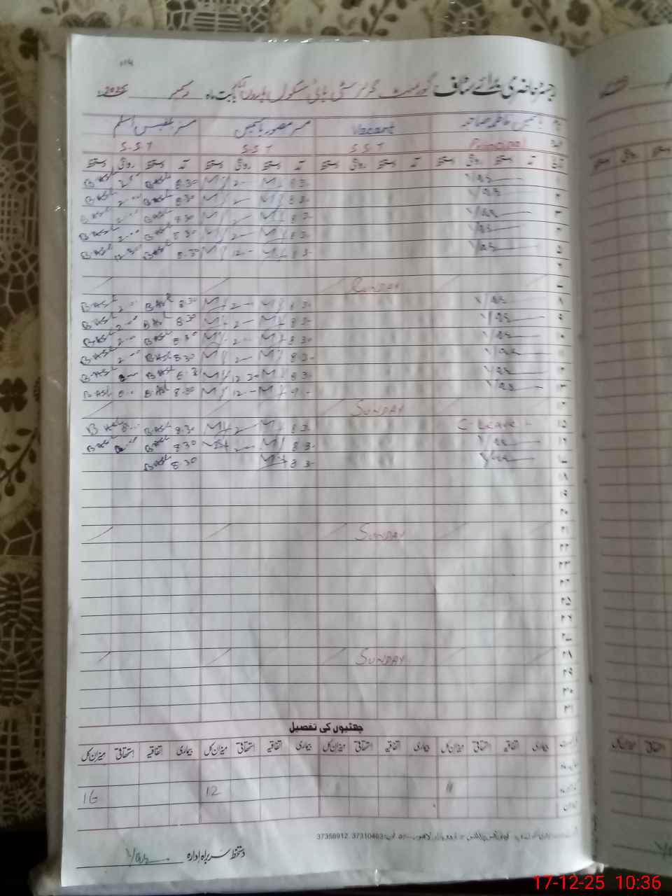 | CNIC | Full Name | Designation | R/C | Absence During Last Calender Month |