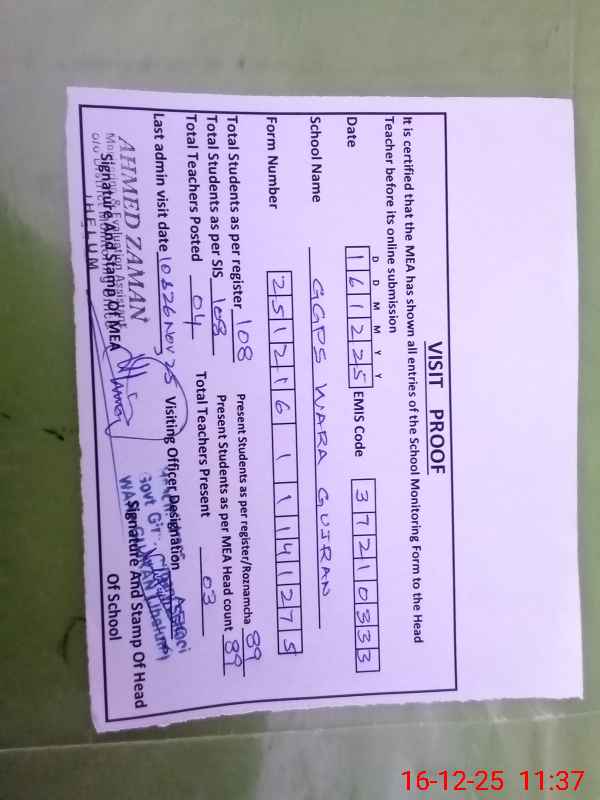 | EMIS Code: 37210333 | Name of School: GGPS WARA GUJRAN | |||