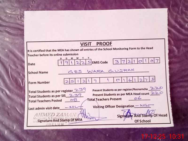 | EMIS Code: 37210107 | Name of School: GES WARA GUJRAN | |||