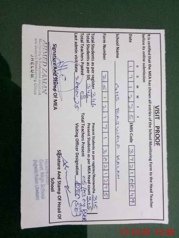| EMIS Code: 37210049 | Name of School: GHS BAJWALA KALAN | |||