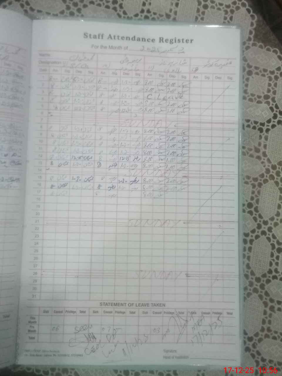 | 36**** | Su**** Ak**** | EST Urdu | Regular | 0 | 0 | 0 | 0 | 0 | 0 | 0 | 0 | 0 | Casual |