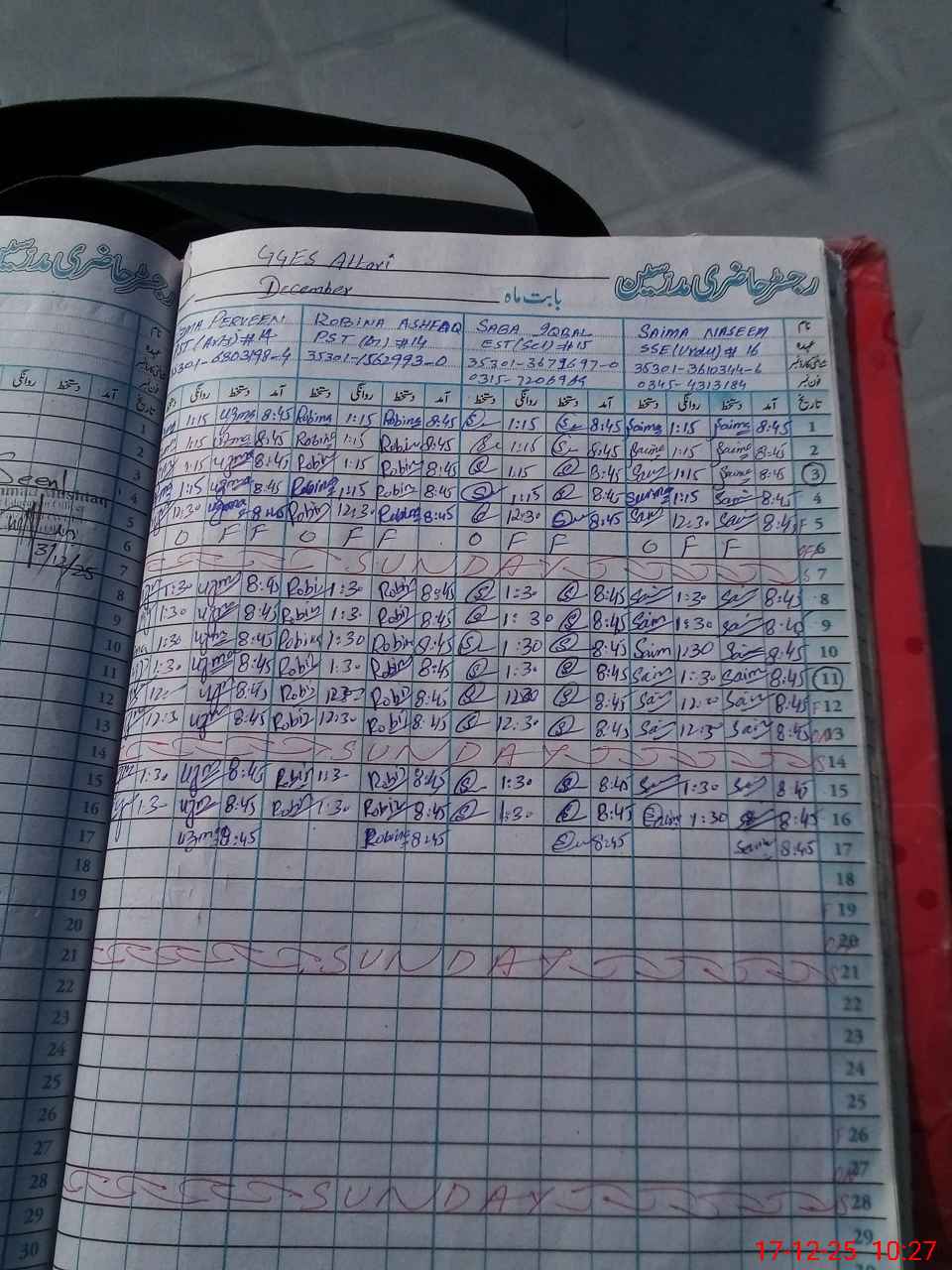 | CNIC | Full Name | Designation | R/C | Absence During Last Calender Month |