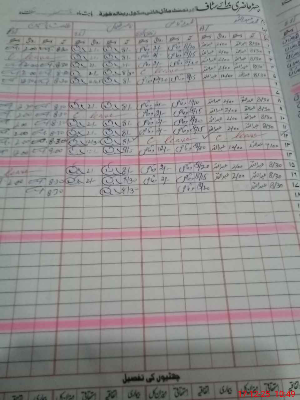 | CNIC | Full Name | Designation | R/C | Absence During Last Calender Month |