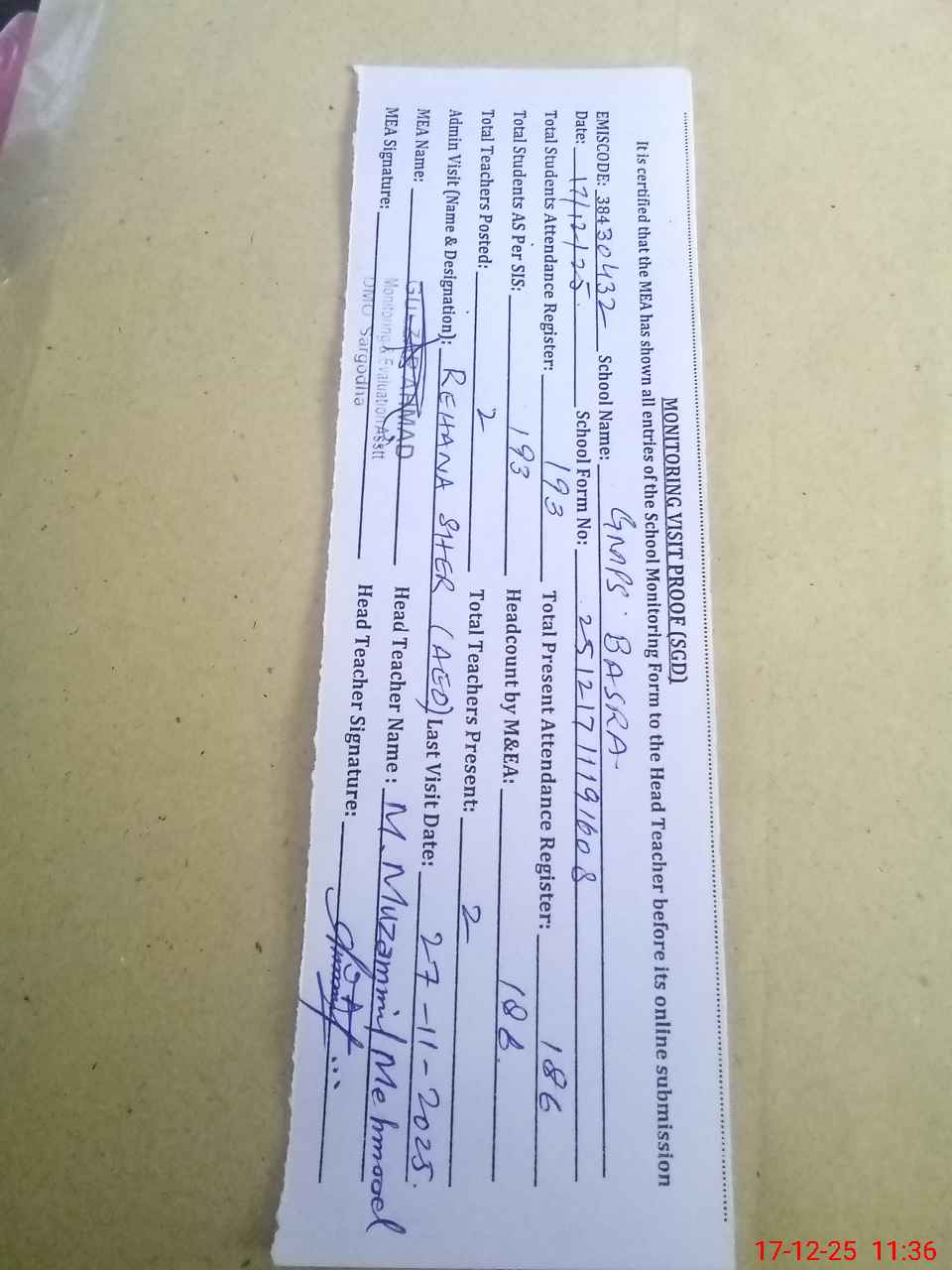 | EMIS Code: 38430432 | Name of School: GMPS BASRA | |||