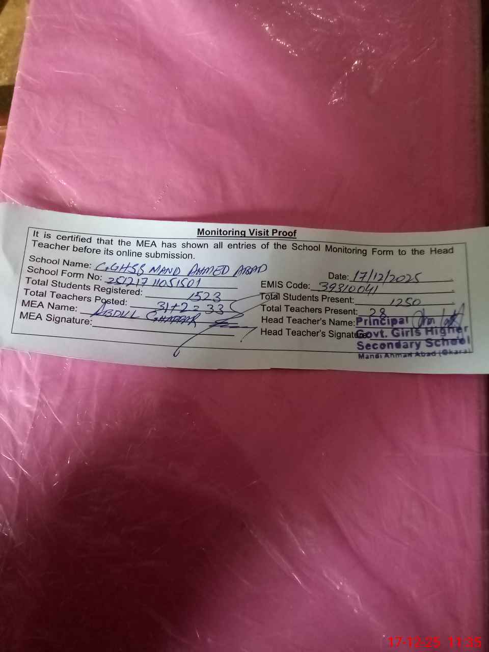| EMIS Code: 39310041 | Name of School: GGHSS MANDI AHMED ABAD | |||