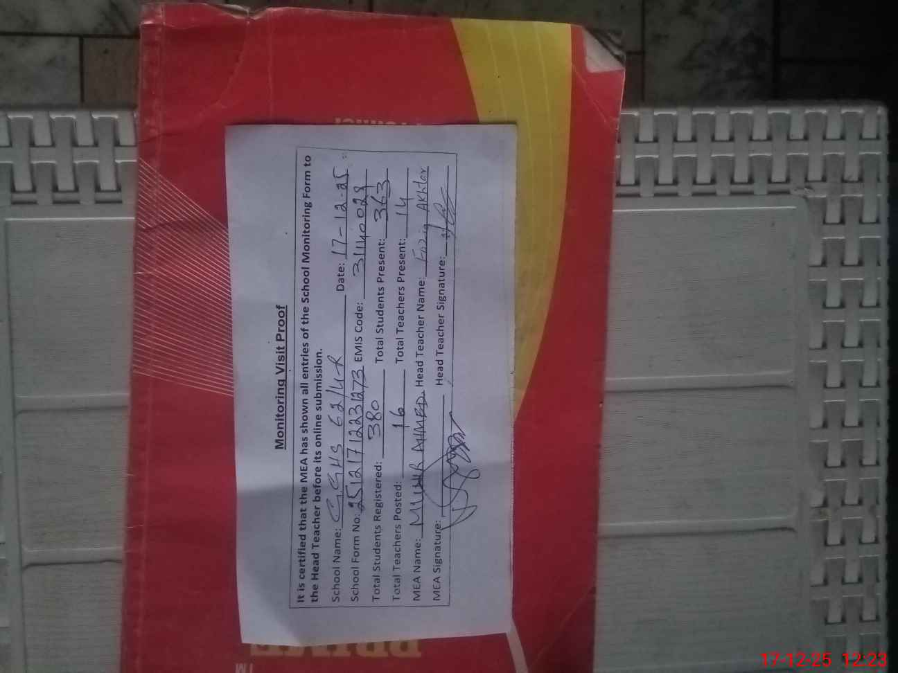 | Certified that this School was Inspected by the Undersigned MEA/DMO Today and the Information Stated Above is as Per Record. | |||||