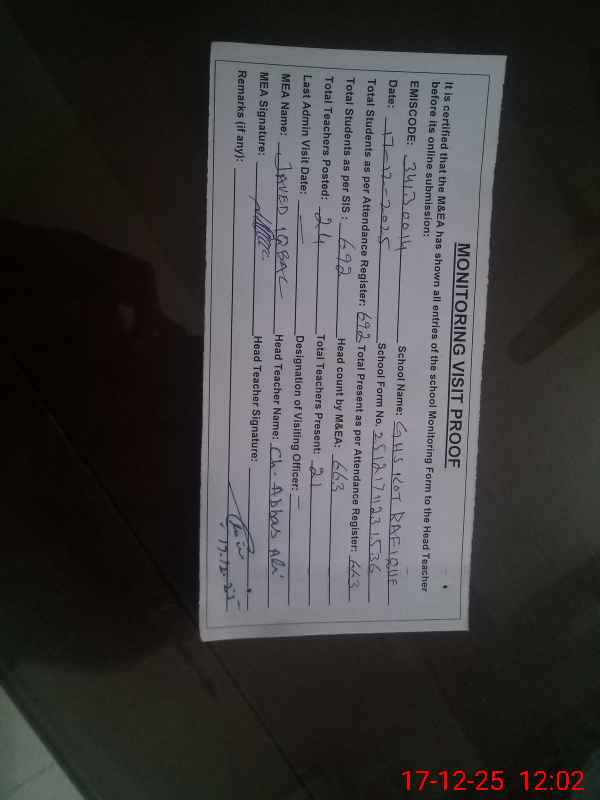 | Certified that this School was Inspected by the Undersigned MEA/DMO Today and the Information Stated Above is as Per Record. | |||||
