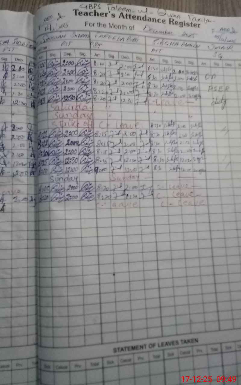 | 37**** | Si**** Sh**** | PST Arts | Regular | 0 | 0 | 0 | 0 | 0 | 0 | 0 | 0 | 0 | Absent (Un-Authorized) |