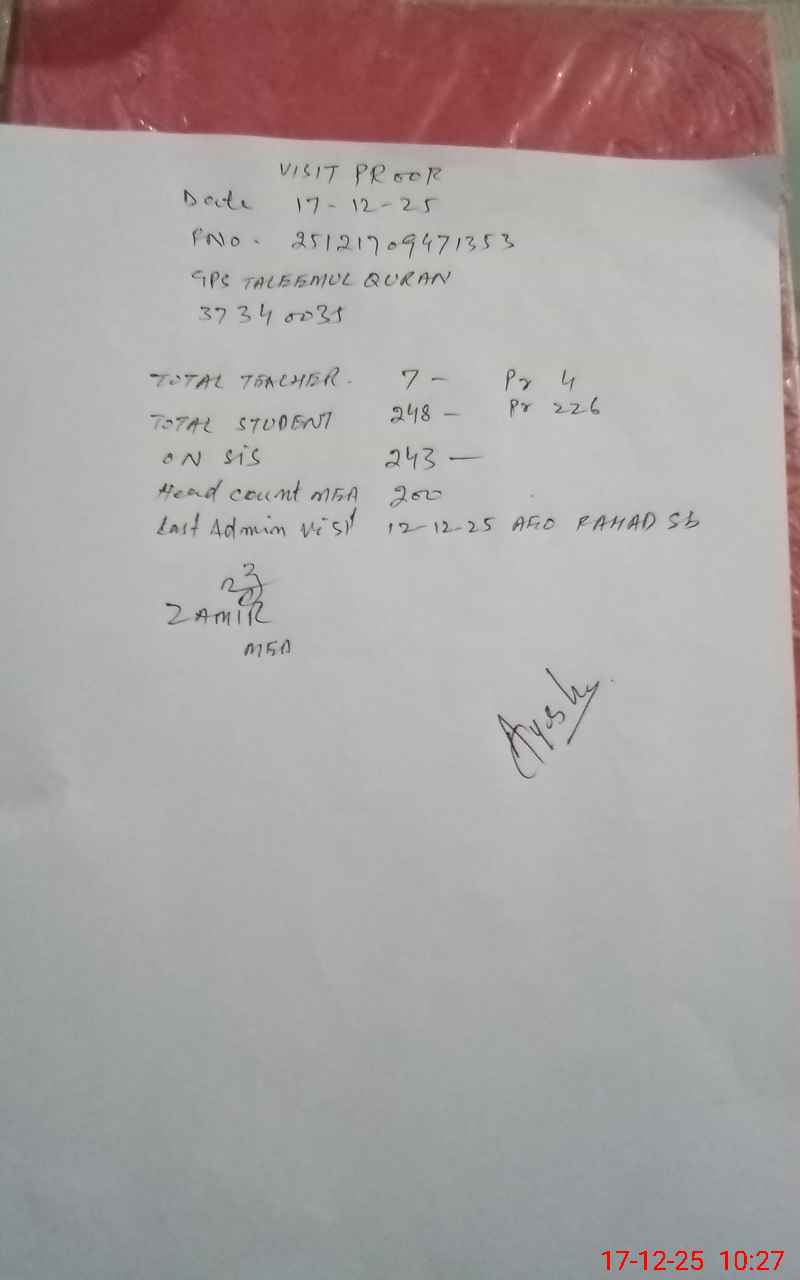 | EMIS Code: 37340035 | Name of School: GPS TALEEM-UL-QURAN | |||