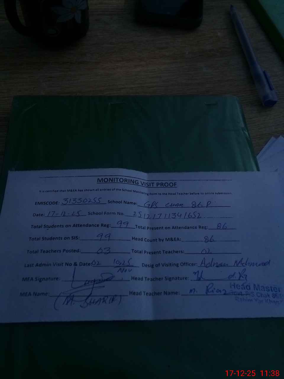 | EMIS Code: 31330255 | Name of School: GPS CHAK 86/P | |||