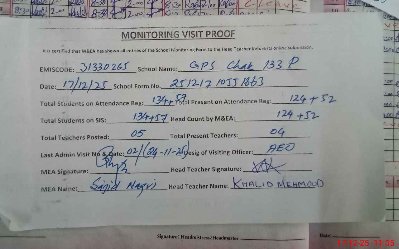 | EMIS Code: 31330265 | Name of School: GPS CHAK 133/P | |||