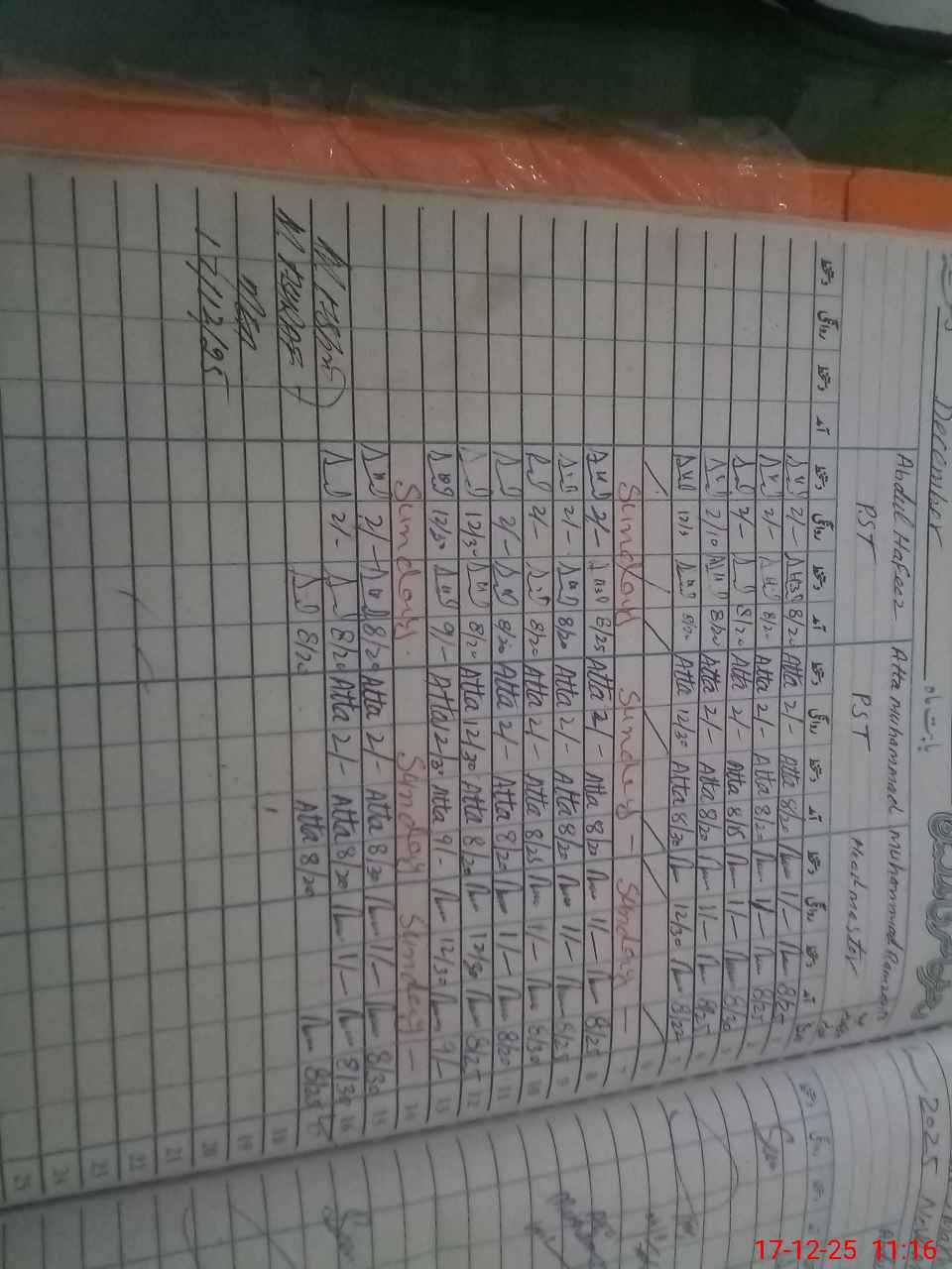 | CNIC | Full Name | Designation | R/C | Absence During Last Calender Month |