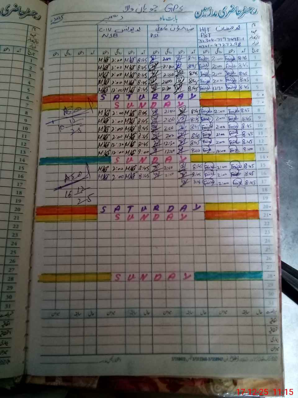 | CNIC | Full Name | Designation | R/C | Absence During Last Calender Month |