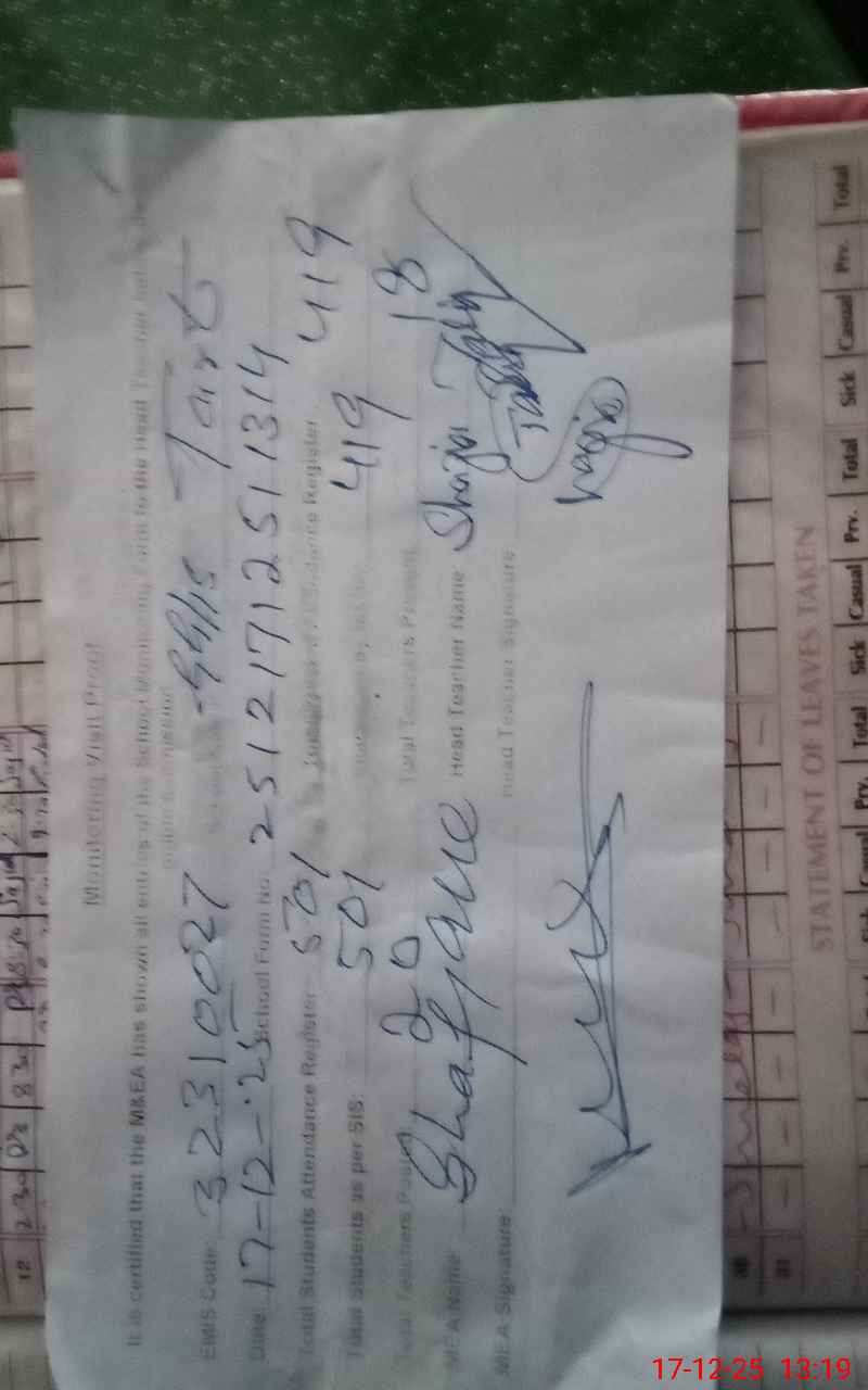 | Attendance Register | Head Teacher | MEA with School | Visit Proof |