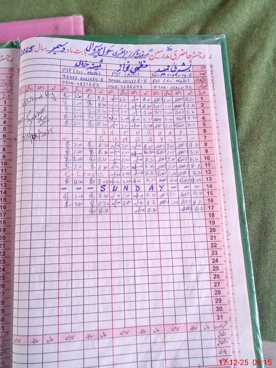 | Name: Uz**** Na**** Designation: (School Headmaster's/Headmistress's) PST Phone/Cell Number: 03**** |