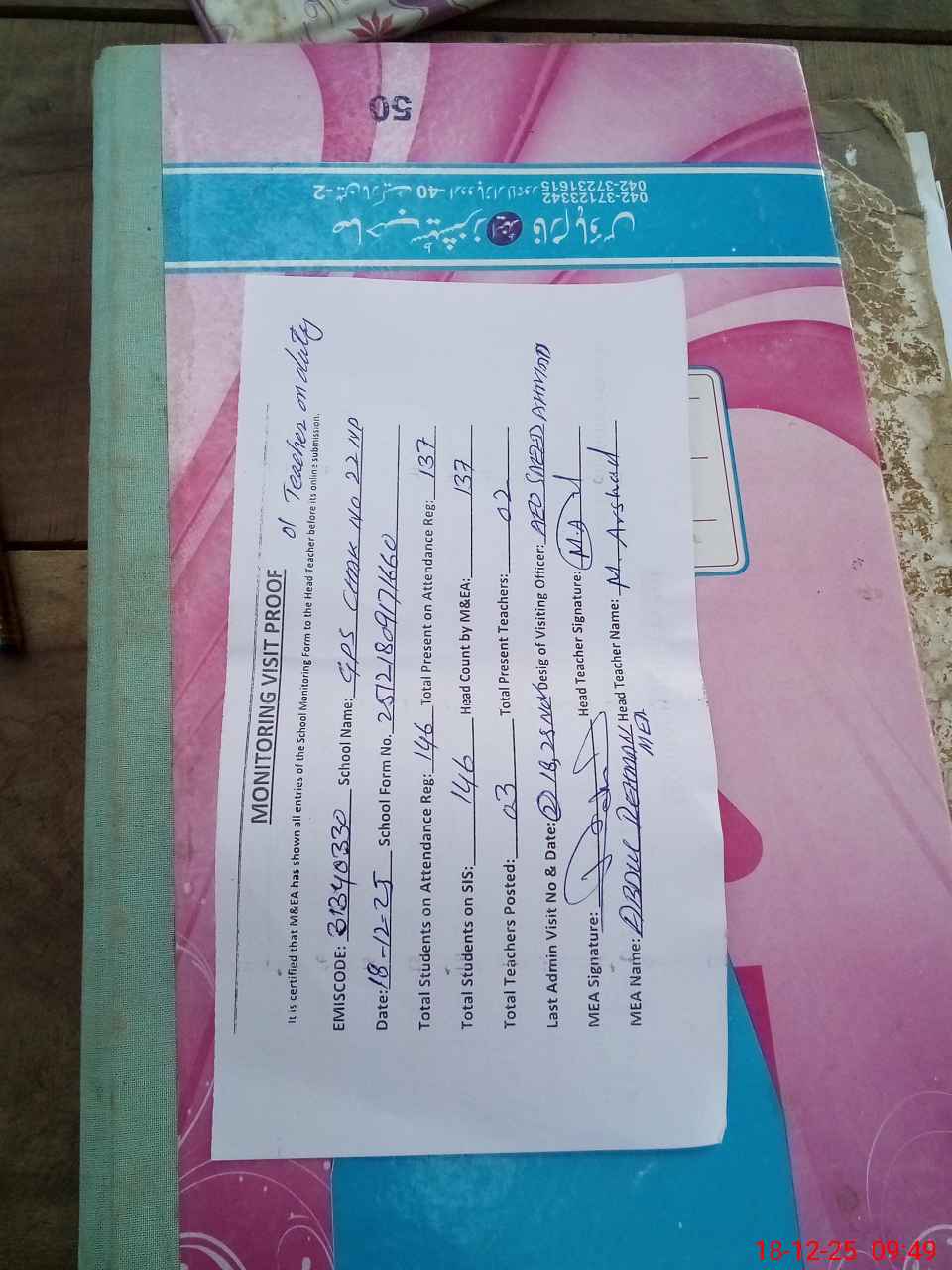 | EMIS Code: 31340330 | Name of School: GPS CHAK NO 22/NP | |||