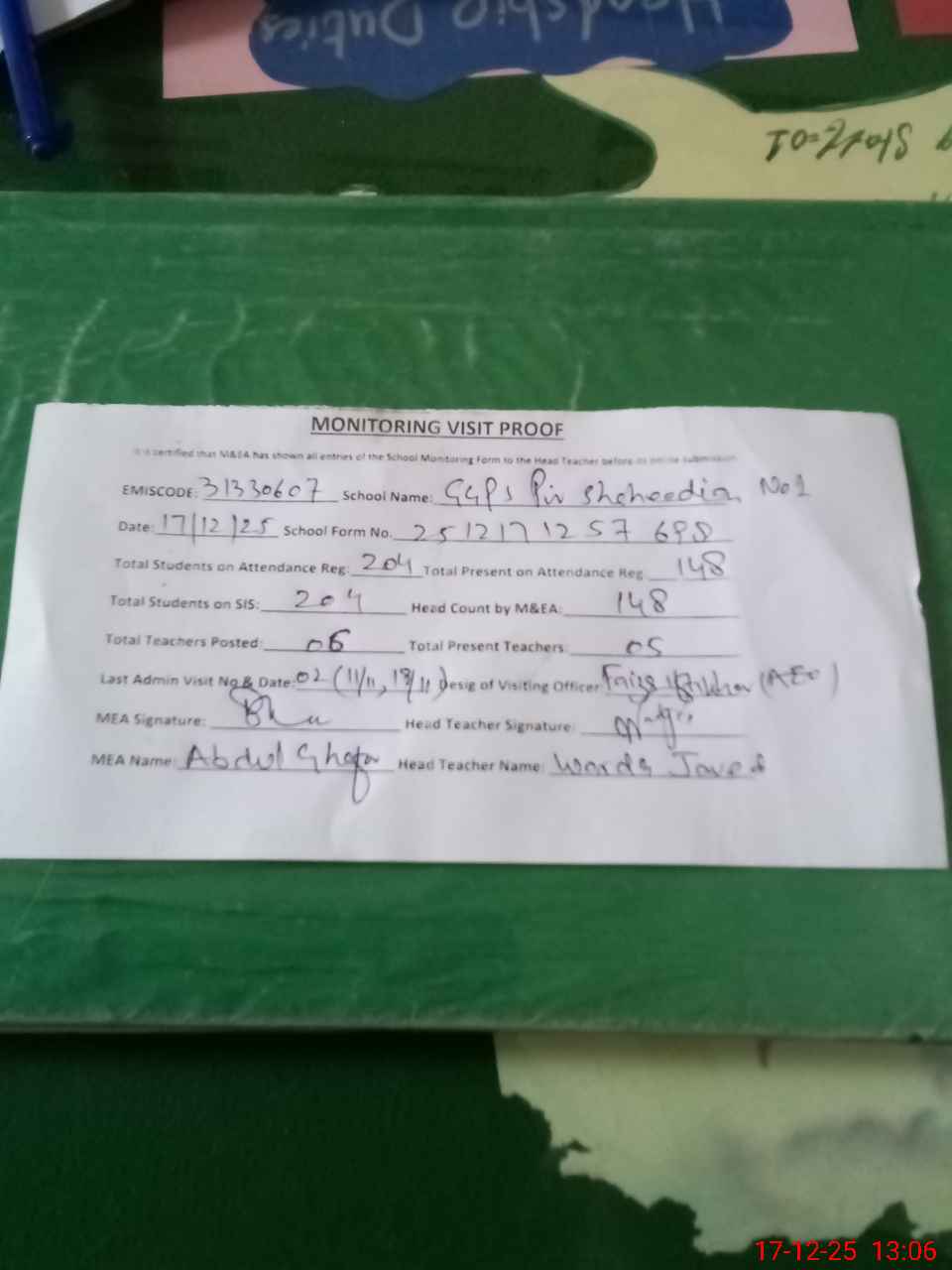 | EMIS Code: 31330607 | Name of School: GGPS PIR SHAHIDAN NO.1 | |||