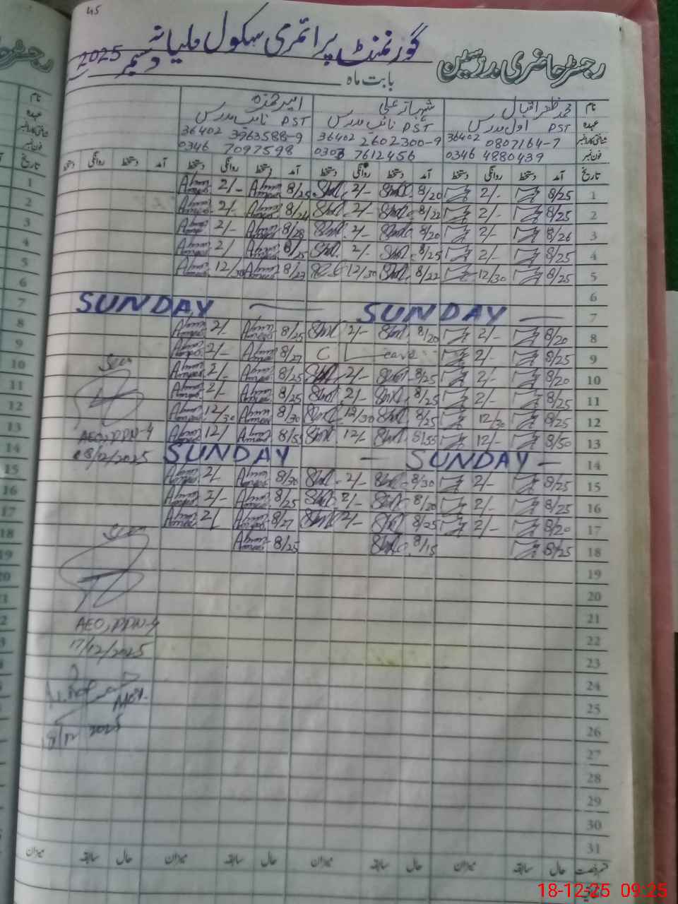 | Name: MU**** ZA**** IQ**** Designation: (School Headmaster's/Headmistress's) PST Phone/Cell Number: 03**** |