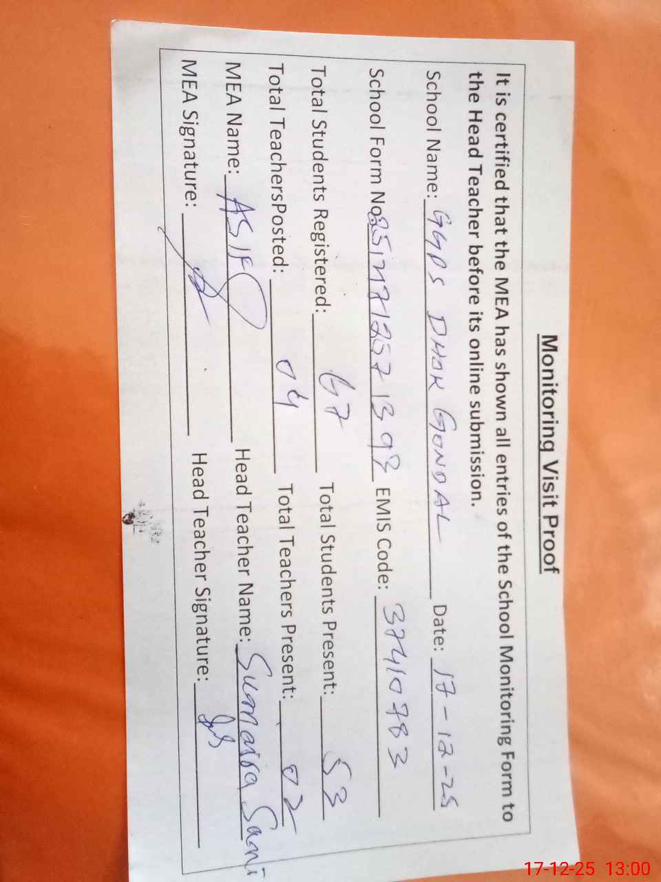 | EMIS Code: 37410783 | Name of School: GGPS DHOK GONDAL | |||