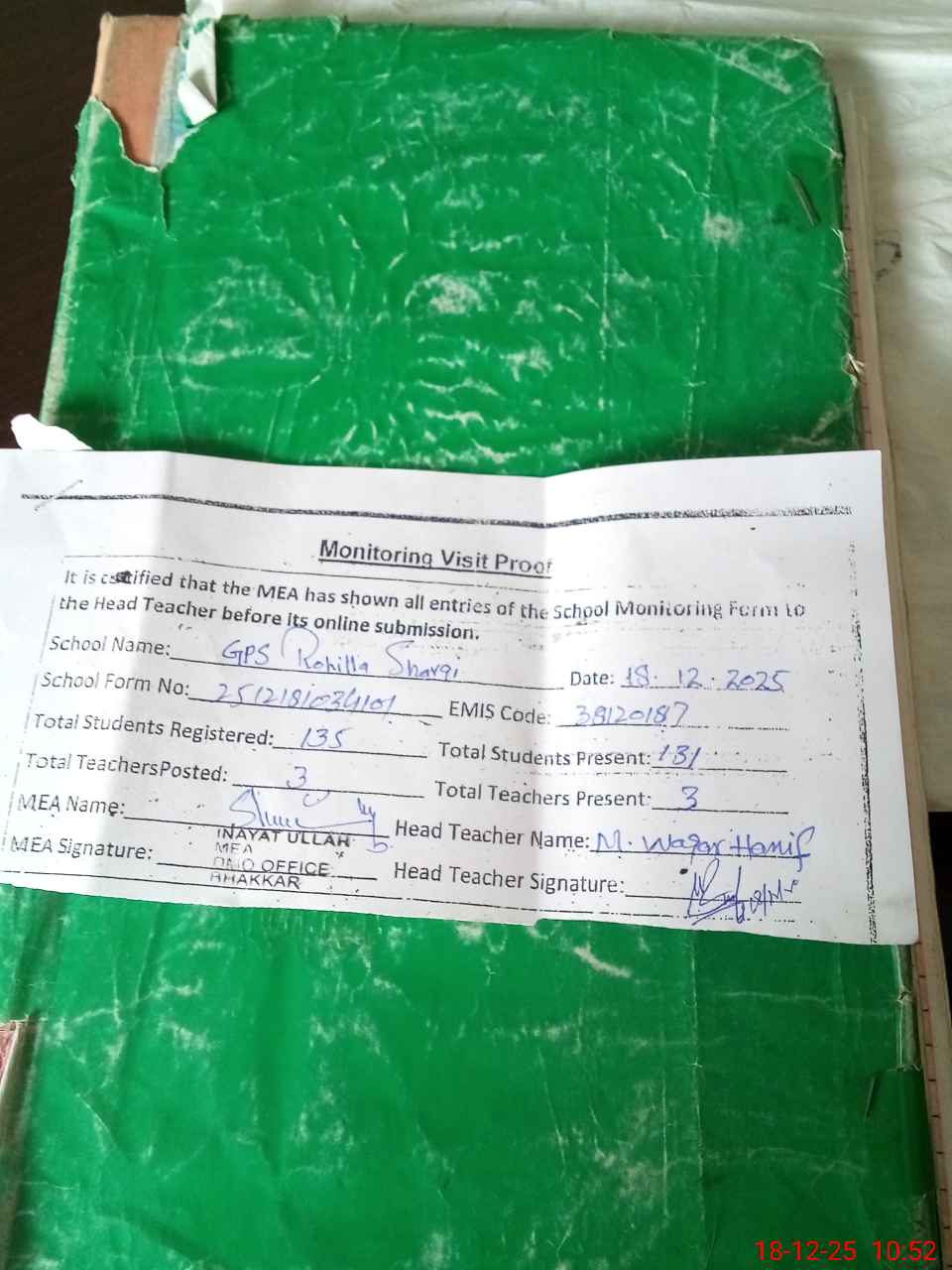 | EMIS Code: 38120187 | Name of School: GPS ROHILLA SHARQI | |||