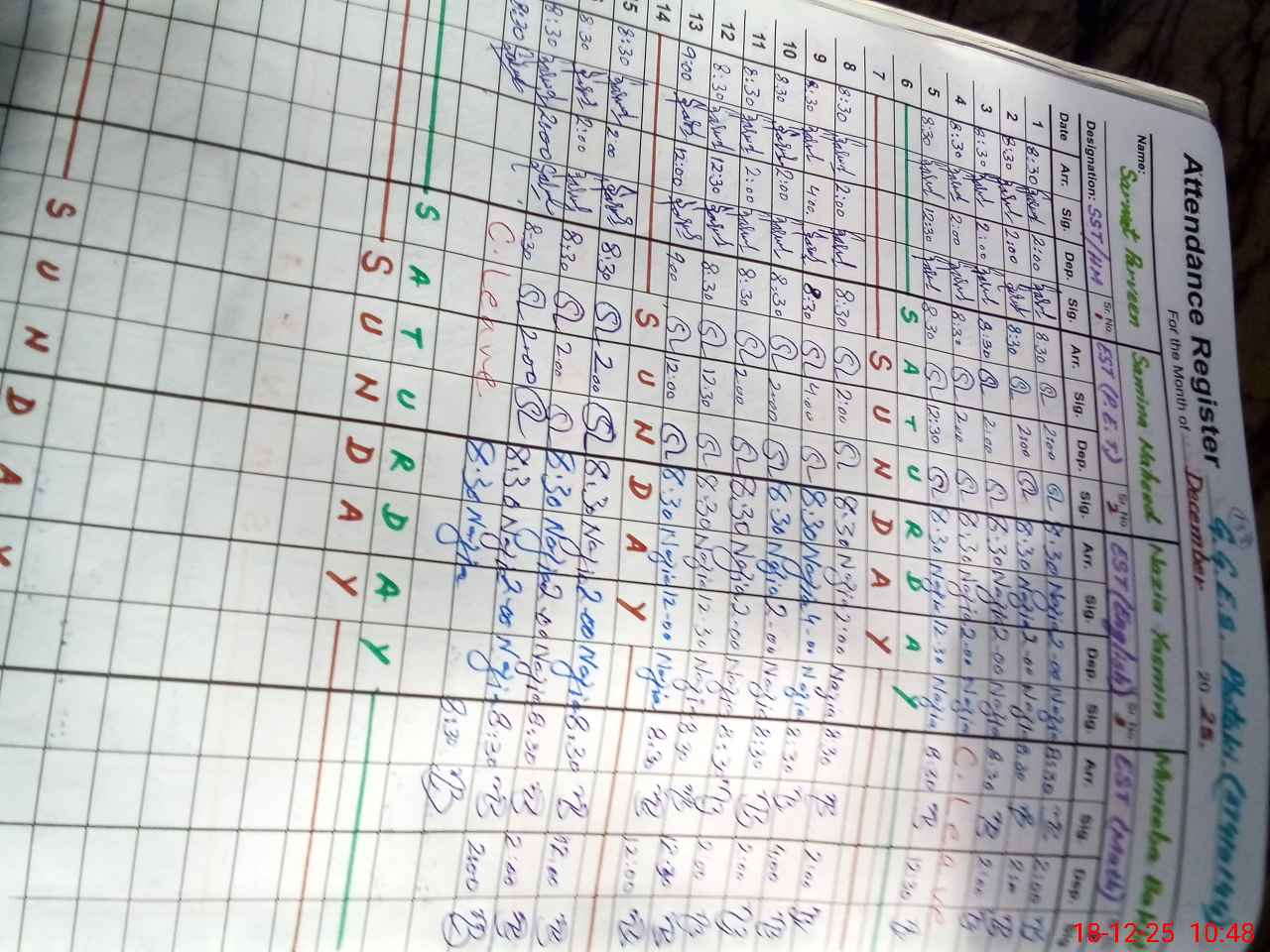 | 37**** | Sa**** Na**** | EST Physical Education | Regular | 0 | 0 | 0 | 0 | 0 | 0 | 0 | 0 | 0 | Casual |