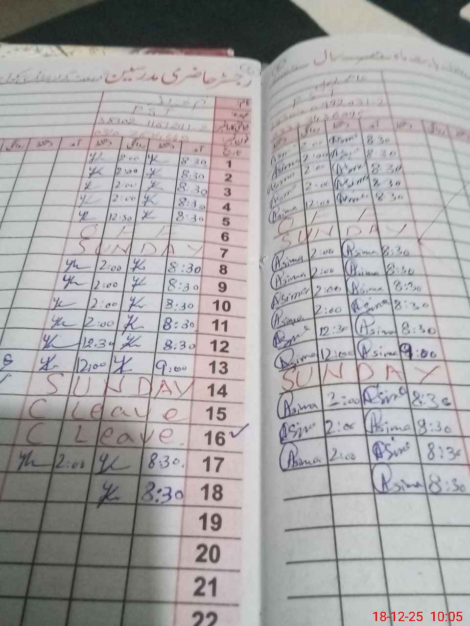 | CNIC | Full Name | Designation | R/C | Absence During Last Calender Month |