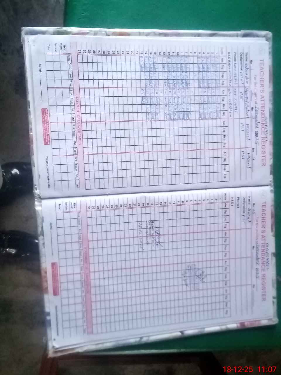 | CNIC | Full Name | Designation | R/C | Absence During Last Calender Month |