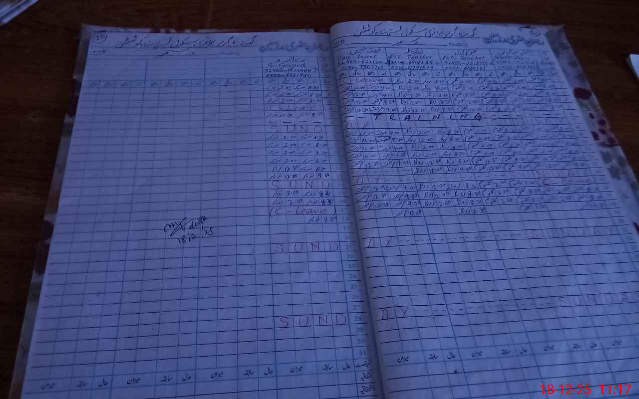 | CNIC | Full Name | Designation | R/C | Absence During Last Calender Month |
