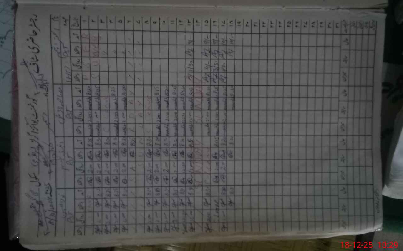 | CNIC | Full Name | Designation | R/C | Absence During Last Calender Month |