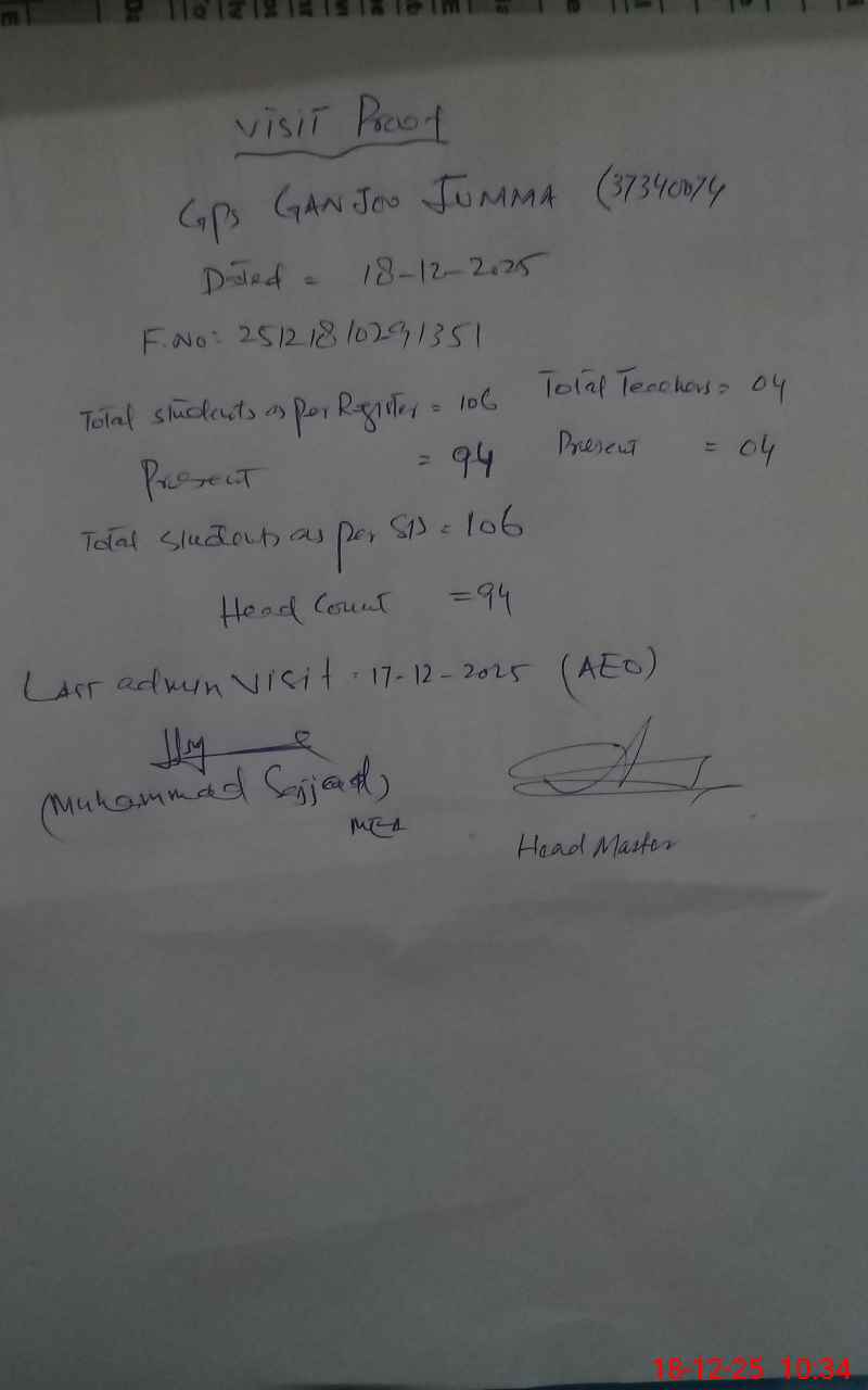 | EMIS Code: 37340074 | Name of School: GPS GANGOO JUMA | |||