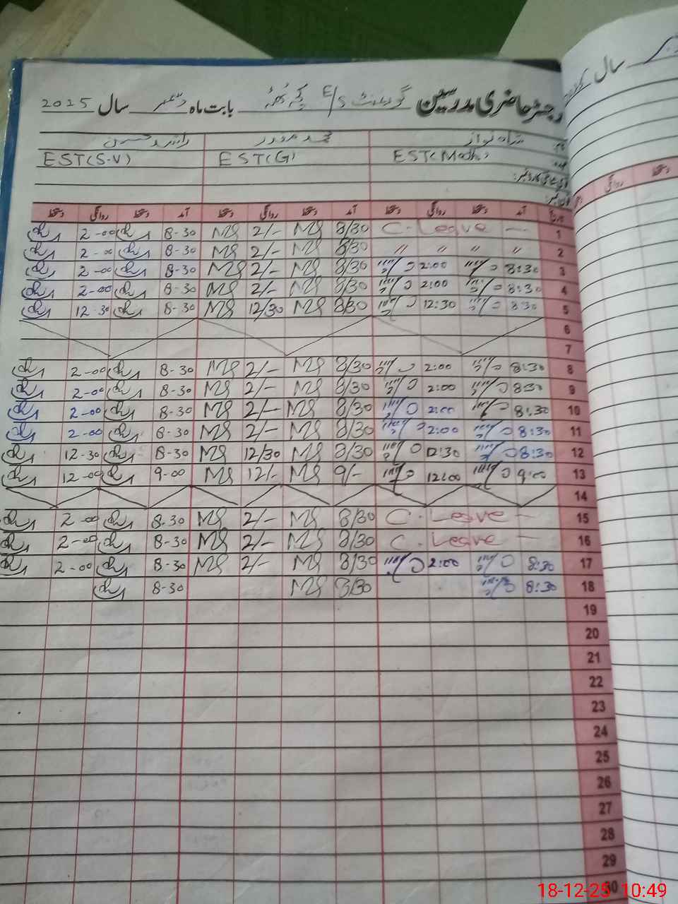 | CNIC | Full Name | Designation | R/C | Absence During Last Calender Month |