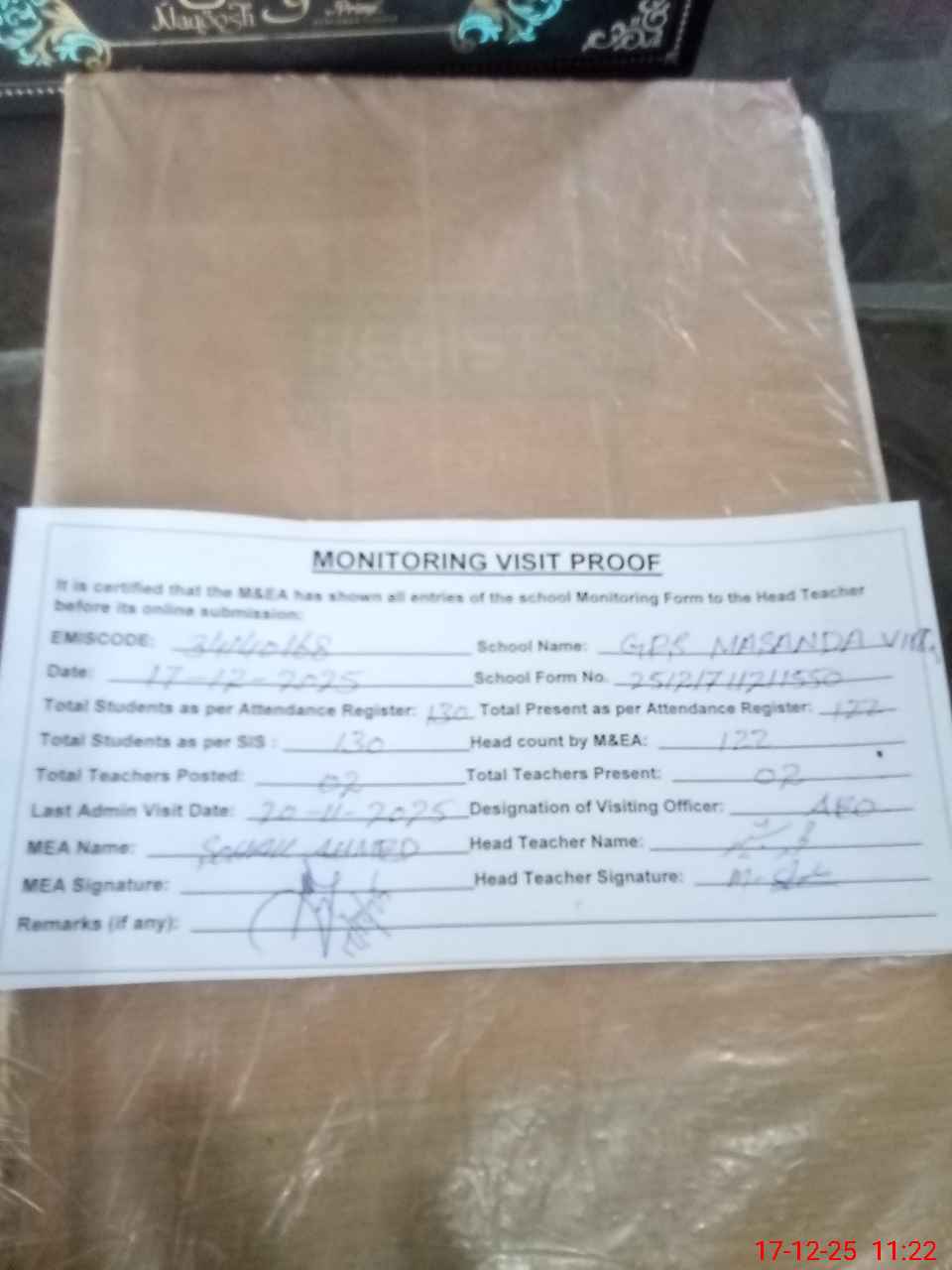 | EMIS Code: 34140168 | Name of School: GPS MASANDA VIRKAN | |||