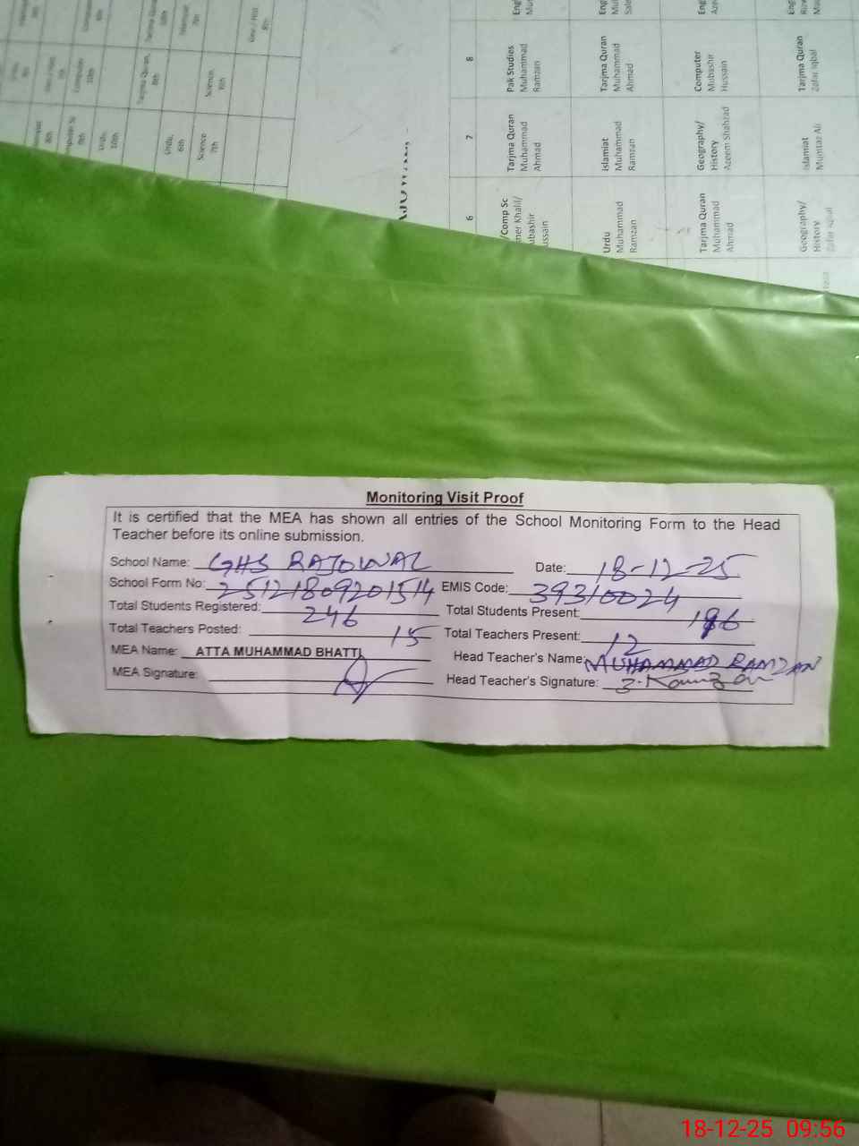 | EMIS Code: 39310024 | Name of School: GHS RAJOWAL | |||
