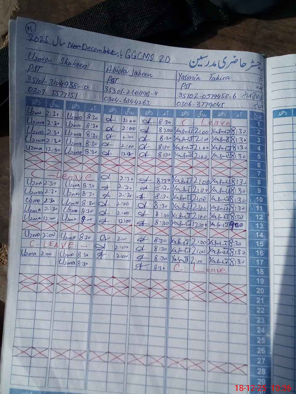 | CNIC | Full Name | Designation | R/C | Absence During Last Calender Month |