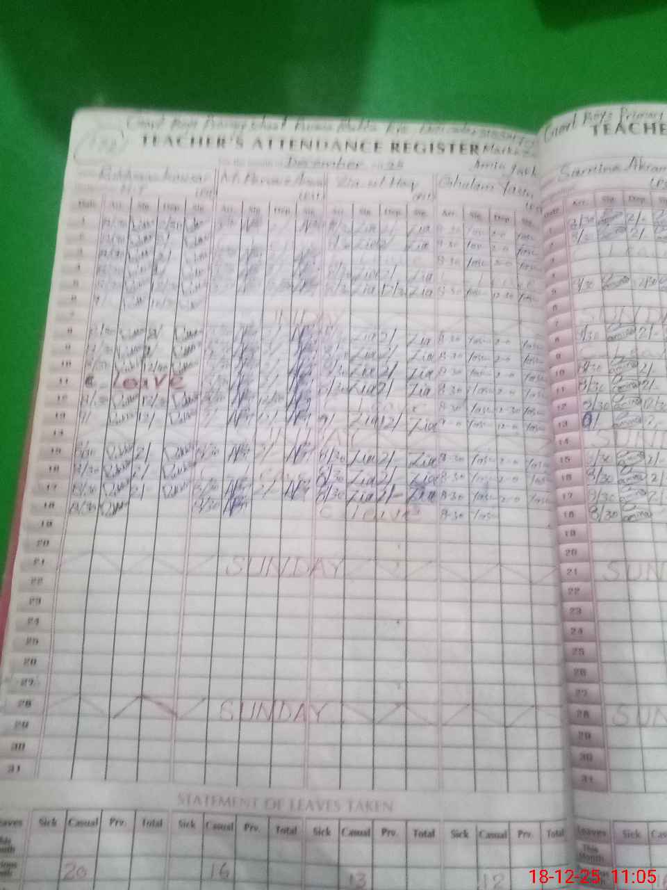 | Leave | Duty | Absent | Maternity | Medical | Ex- Pak |